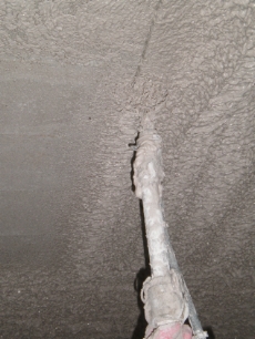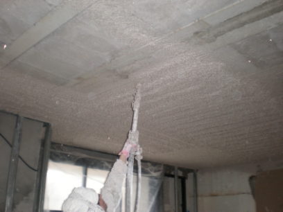 Projection de plâtre mécanique pour protection incendie et coupe-feu.